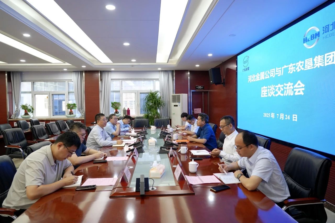 2025年7月24日,广东省农垦集团(农垦总局)(以下简称“广东农垦集团”)党委委员、副总经理莫仕文,广东省广垦橡胶集团有限公司党委书记、董事长杨福云一行到访河北物流集团金属材料有限公司(以下简称“金属公司”)。双方围绕农产品供应链协同、冷链物流合作、“一带一路”协同等事宜展开深入交流。河北物流集团党委常委、副总经理兼金属公司党委书记、董事长张有贵,金属公司党委副书记、总经理高颖等人参加座谈并交流发言。